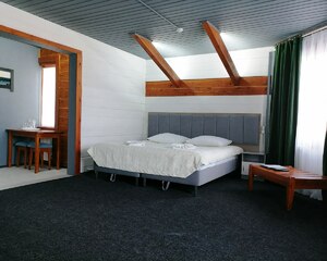 Вместимость и площадь: В зависимости от выбранной категории, номер может быть стандартным (16 кв. м) для 1-2 гостей или просторным семейным (20 кв. м), рассчитанным на размещение с ребёнком на раскладном диване.
