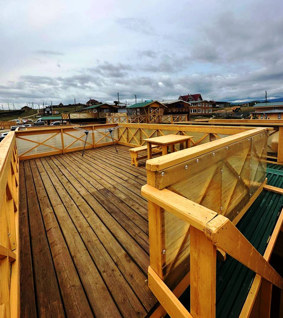Смотровая площадка отеля «Ветер странствий» завораживает своей великолепной панорамой Малого моря и острова Ольхон. Площадка оборудована мангальными зонами и качелями с индивидуальными столиками. Это идеальное место для семейных посиделок и фотосессий.